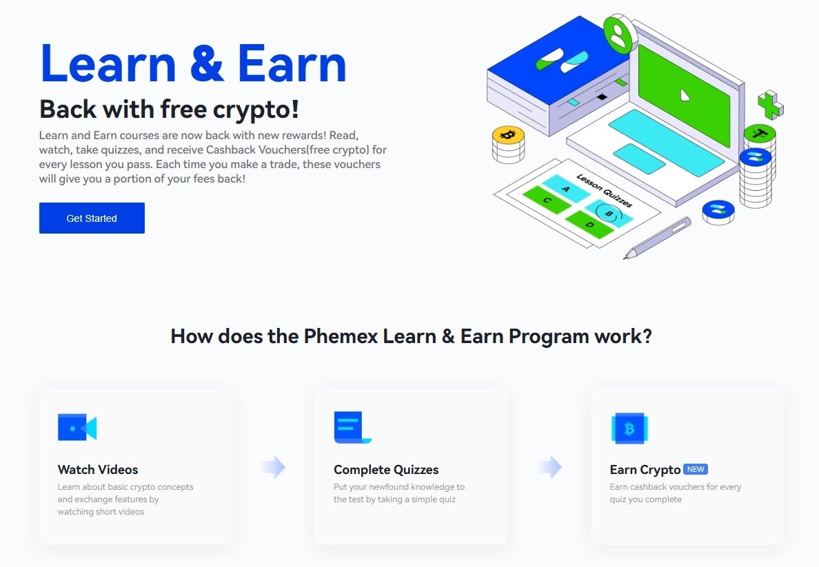 تُعد Phemex منصة تبادل أخرى تقدم مكافآت “تعلم واكسب” للمستخدمين. لكن برنامج “Learn and Earn” في Phemex يختلف قليلاً عن غيره؛ فهو لا يقدم مكافآت بالعملات الرقمية مباشرة، بل يُضيف إلى حسابك دولارات أمريكية يمكنك استخدامها للاستثمار في العملات الرقمية. تصل قيمة المكافآت إلى 1 دولار أمريكي.