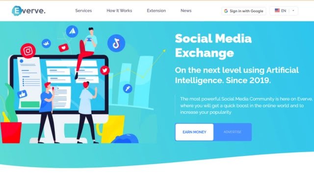 Everve هو موقع رائع لكسب المال من إكمال مهام مواقع التواصل مثل الإعجاب بالمنشورات والإشتراك بحسابات تويتر وتيك توك ومشاهدة الفيديوهات على يوتيوب، إضافة إلى تصفح المواقع. كما ستحصل على عمولة 25% من أرباح الأشخاص اللذين دعوتهم للتسجيل في الموقع.