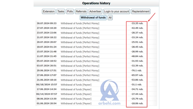 يحدد الموقع يوم في الشهر لدفع الأرباح لجميع المستخدمين، وإلى حد هذه اللحظة سحبت أكثر من 3000 روبل.
