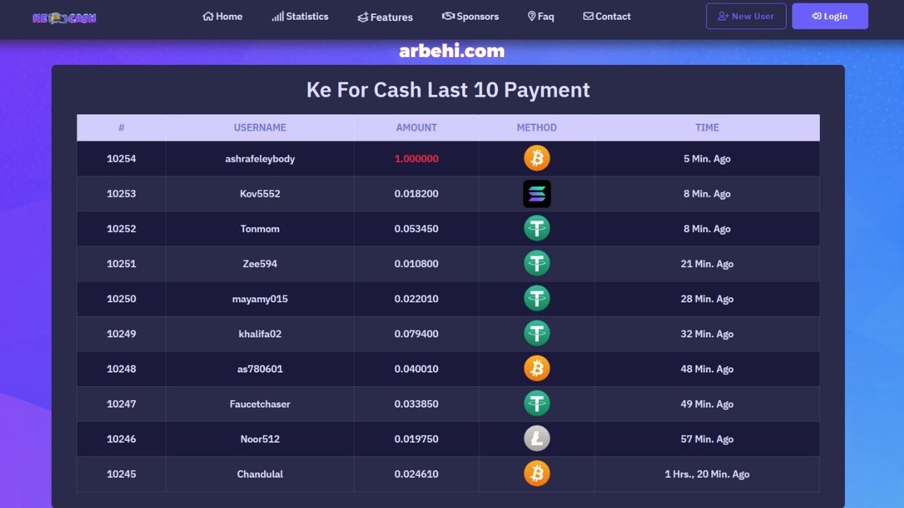 يمكنك سحب الأرباح من موقع keforcash بعملات رقمية مختلفة وهي: