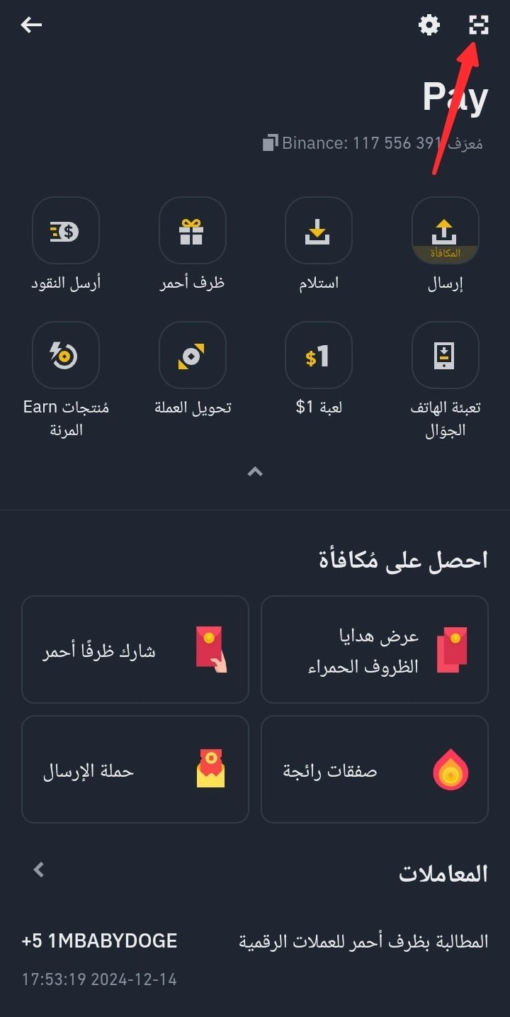 أسهل طريقة هي مسح رمز الاستجابة السريعة (QR) الخاص بـ Binance Pay الخاص بالمستلم باستخدام كاميرا هاتفك المحمول.