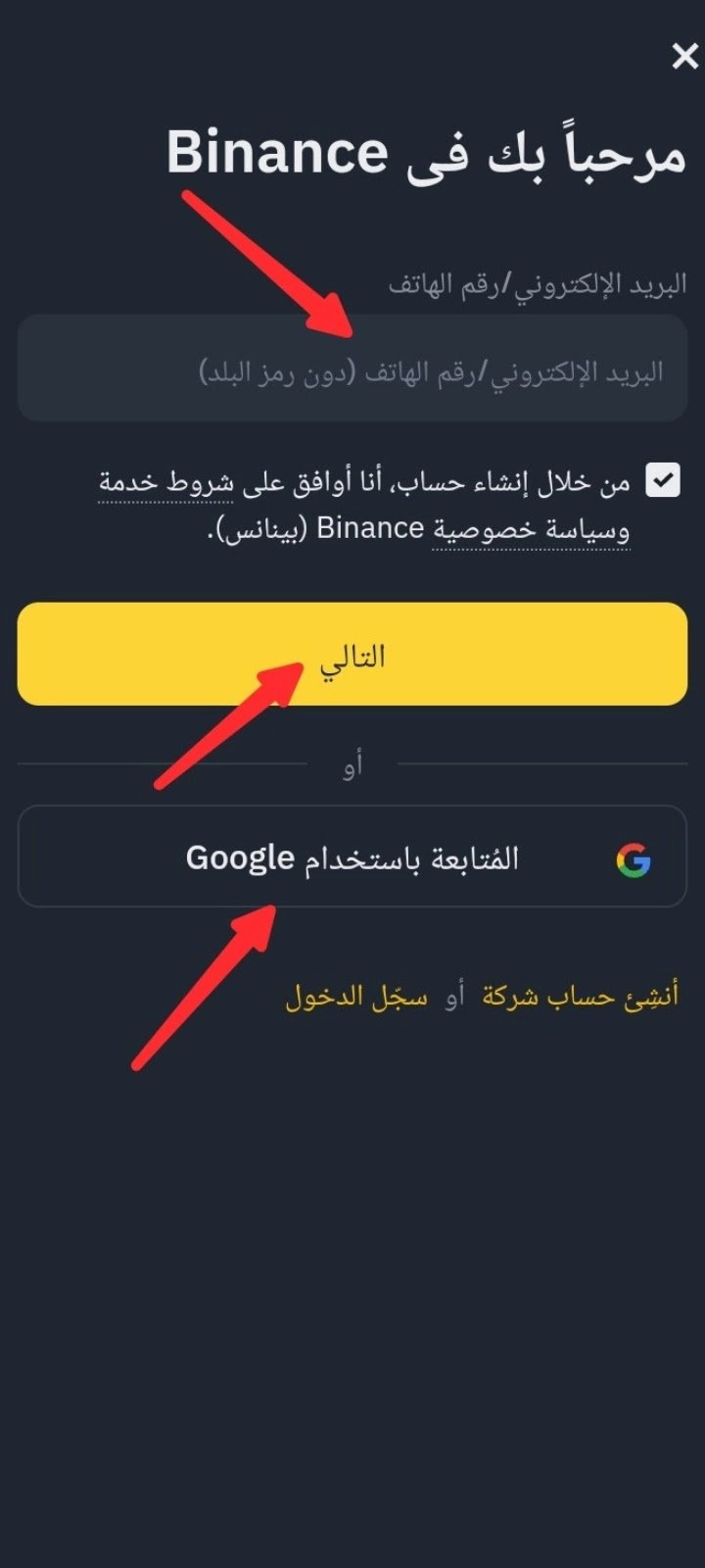 - بريدك الإلكتروني المسجل في حساب Binance.