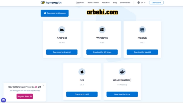يمكن لأي شخص بدء الربح بسهولة من خلال تثبيت التطبيق على أجهزته سواء كانت هواتف ذكية أو حواسيب. في الفقرات التالية، سنتناول خطوات التسجيل والبدء في استخدام Honeygain.