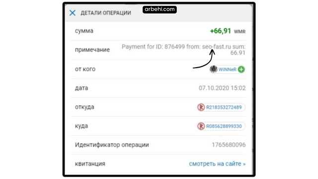 سأشارك معكم في هذا المقال إثبات سحب بقيمة 66.91 روبل من موقع seo-fast على بنك الويب موني.