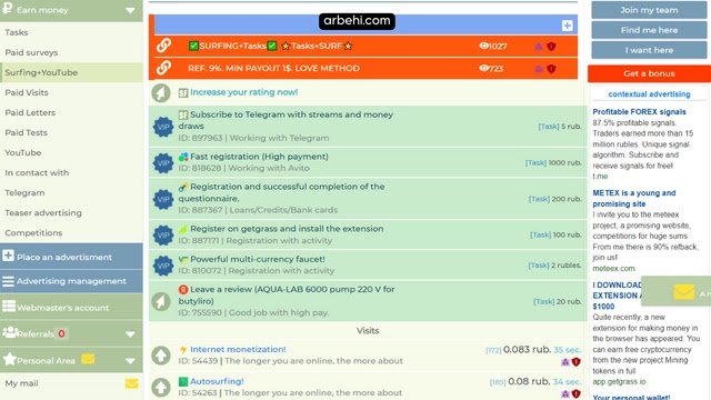 وفي هذا المقال، سأقدم لكم أفضل موقع للربح من الإنترنت عن طريق إتمام المهام البسيطة مثل التسجيل في المواقع الإلكترونية، الإنضمام إلى مجموعات على VK، مشاهدة الإعلانات.