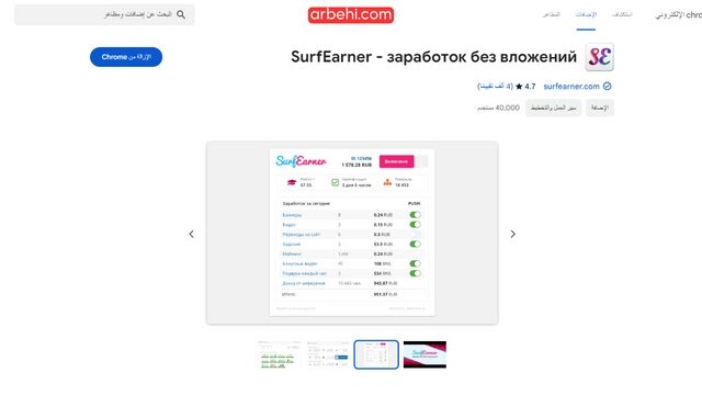 يمكنك تثبيت إضافة أو إمتداد surfearner على متصفح الإنترنت الخاص بك مثل جوجل كروم، opera browser، مايكروسوفت ايدج.