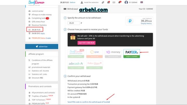 | كيفية سحب الأرباح من موقع surfearner |