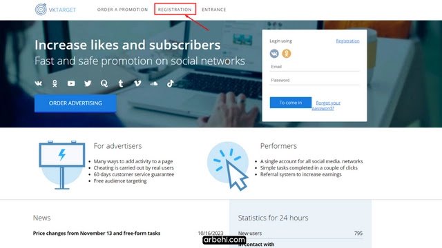 - قم بالدخول لموقع vktarget عبر هذا الرابط ثم انقر على “Register”.