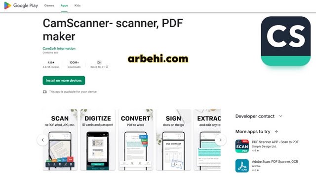 CamScanner هو تطبيق مفيد لمسح المستندات ضوئيًا أثناء التنقل. قم بعمليات مسح عالية الجودة باستخدام كاميرا جهازك. وقم بتحسينها باستخدام أدوات الاقتصاص والتحسين التلقائي والتحرير الذكي. قم بتحويل المستندات الممسوحة ضوئيًا إلى ملفات PDF أو JPEG ومشاركتها بسهولة عبر البريد الإلكتروني أو التخزين السحابي.