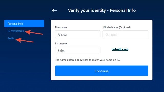 تتضمن عملية “اعرف عميلك” تقديم وثيقة للتحقق من الهوية (جواز سفر، رخصة قيادة). إضافة إلى التقاط صورة سيلفي.
