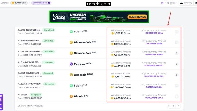 كل مهمة تكملها ستكسبك عددًا معينًا من الكوينز. يمكنك بعد ذلك تحويلها إلى أي عملة مشفرة تريدها. لسحب أرباحك، ما عليك سوى النقر على خيار “Withdraw” الموجود أسفل القائمة اليسري. لكل عملة رقمية حد أدني للسحب، مثال: