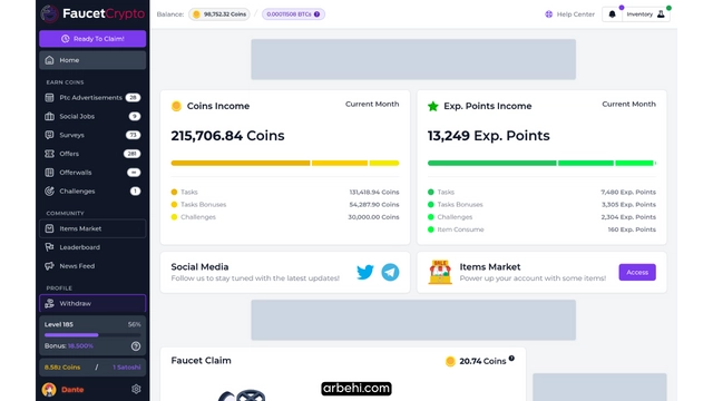 يضم الموقع حاليًا أكثر من 876927 مستخدم في جميع أنحاء العالم، يمكنهم ربح عملات رقمية متعددة مجانًا عن طريق تنفيذ المهام.